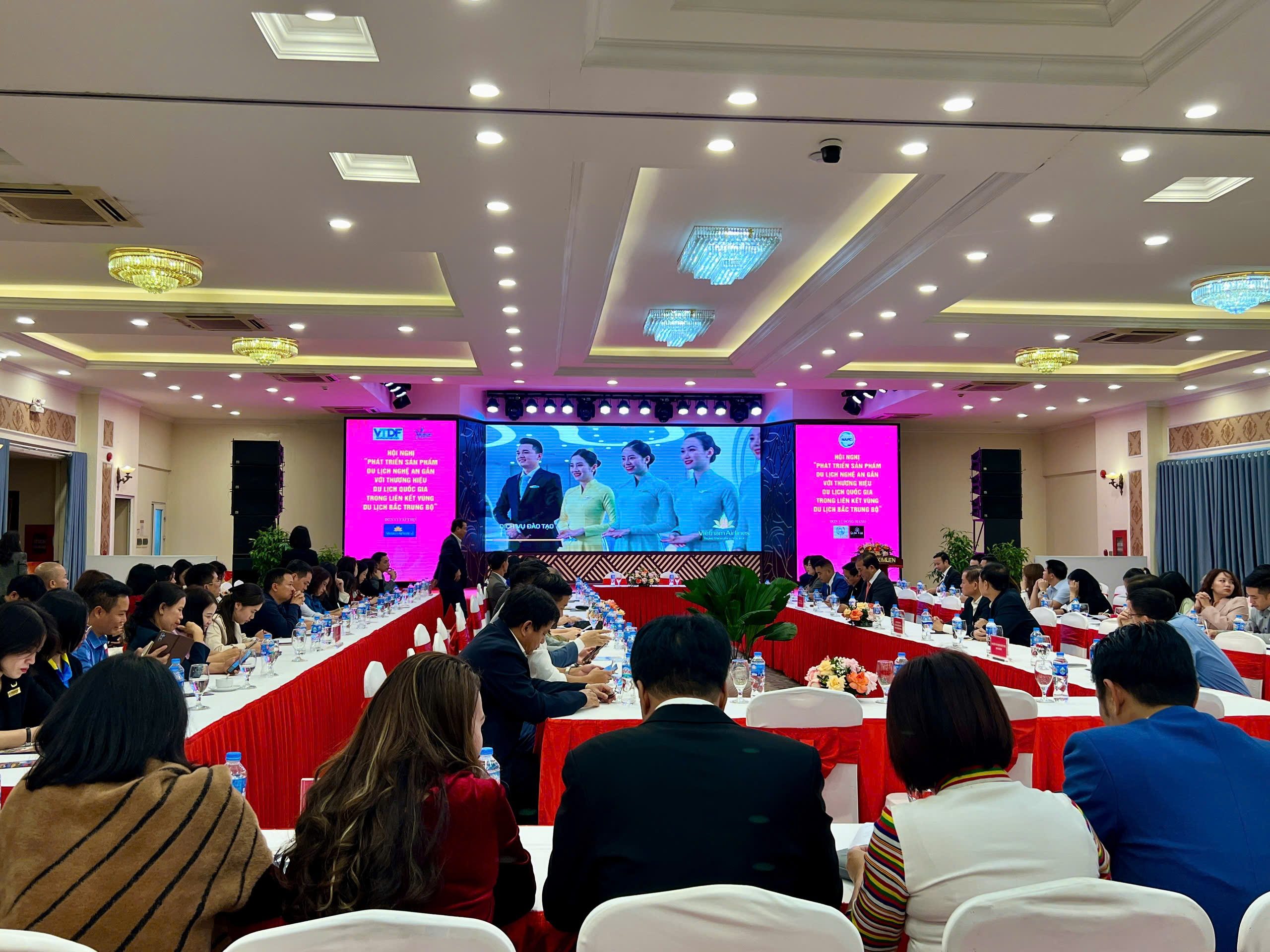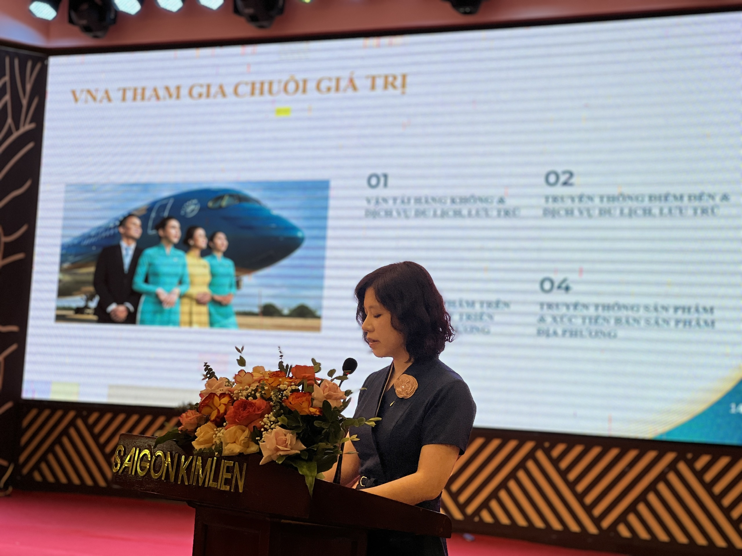 Tham luận tại Hội nghị với danh vị là Nhà tài trợ chính thức của Lễ hội Du lịch và ẩm thực Sen Nghệ An 2024, đại diện của Vietnam Airlines đã tổng kết những kết quả hợp tác giữa TCT Hàng không Việt Nam với các tỉnh, thành phố trên cả nước, đặc biệt là Nghệ An trên các lĩnh vực hợp tác vận tải hành khách, hàng hóa và các sản phẩm Ocop và nổi bật là quảng bá điểm đến và văn hóa địa phương trên các phương tiện truyền thông của Vietnam Airlines.