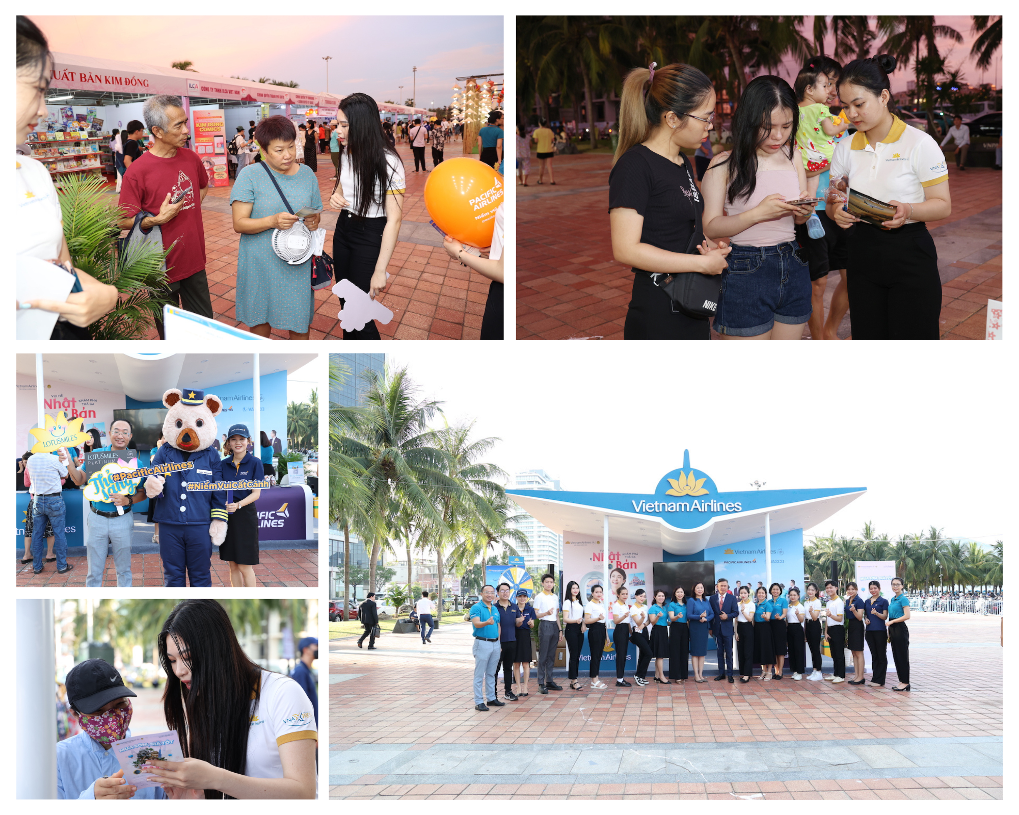 Bên cạnh đó, khách đến tham quan gian hàng còn có cơ hội trả lời câu hỏi, bốc thăm trúng thưởng để nhận những chiếc vé máy bay miễn cước đến từ Pacific Airlines hay phần quà giá trị từ Vietnam Airlines.