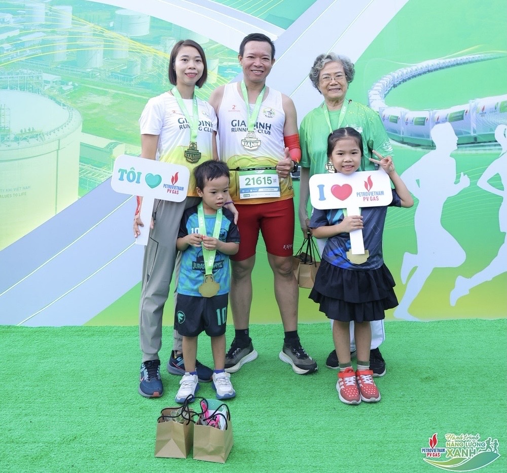 Gia đình 3 thế hệ của anh Quang – chị Khánh cùng tận hưởng niềm vui qua việc chinh phục những cung đường chạy (Ảnh: NVCC)