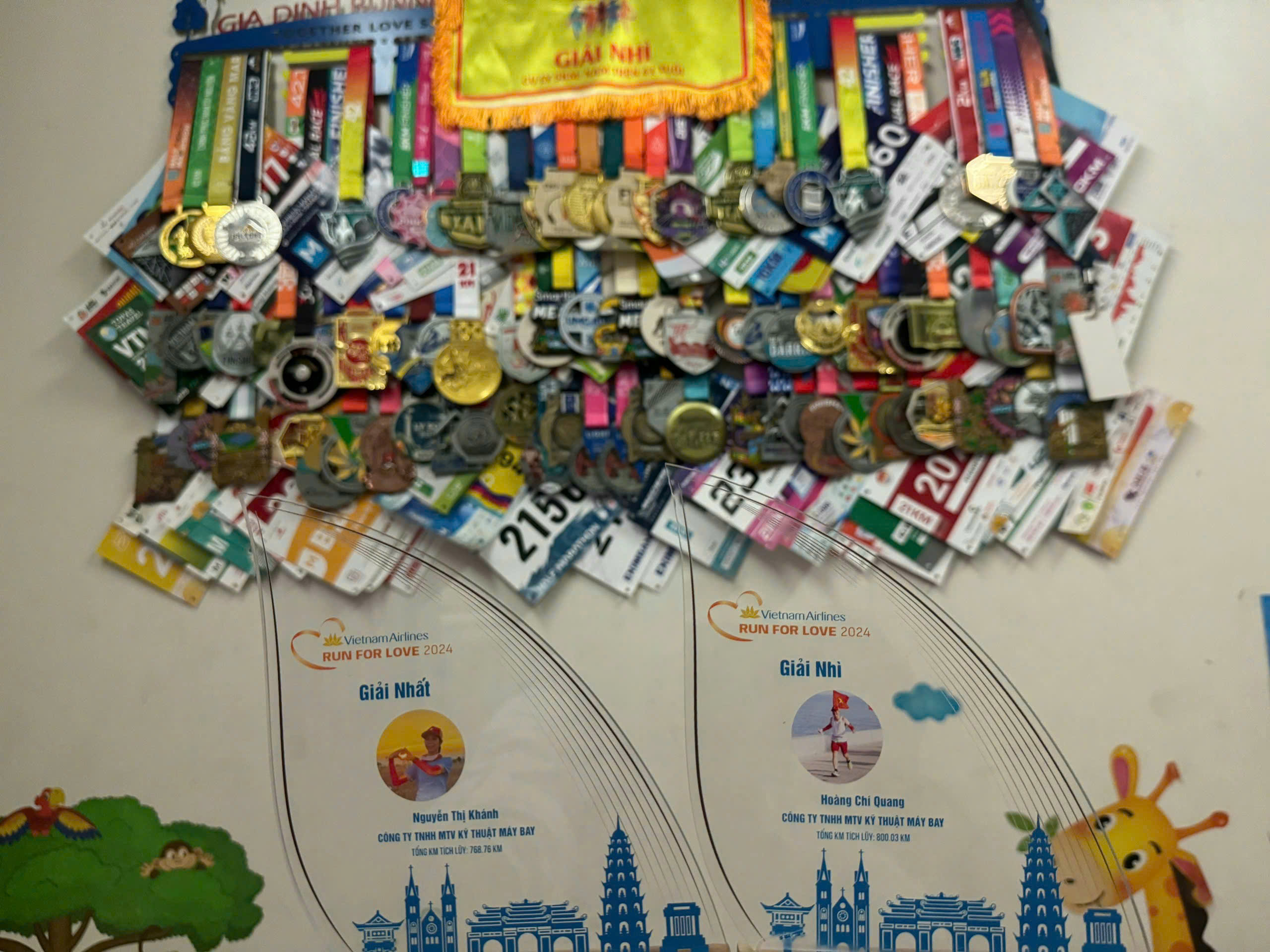 Góc kỷ niệm vô giá của cặp vợ chồng CBNV Vietnam Airlines luôn song hành trên những cung đường chạy (Ảnh: NVCC)