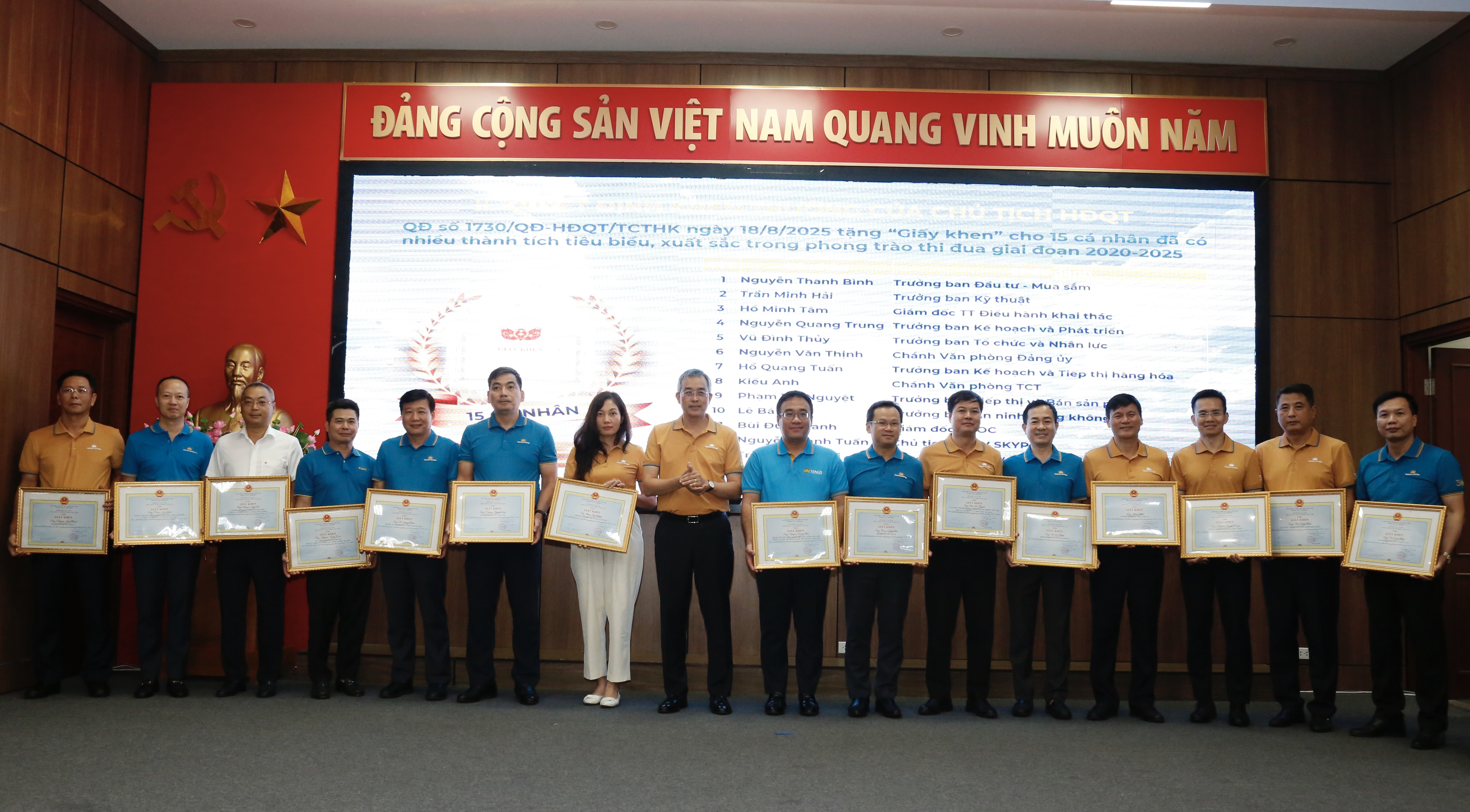 Phong trào thi đua giai đoạn 2020-2025 không chỉ mang lại những thành quả toàn diện cho Tổng công ty, mà còn khẳng định dấu ấn từ những tập thể và cá nhân tiêu biểu, góp phần tạo nên sức lan tỏa rộng khắp trong toàn hệ thống. Tại hội nghị, nhiều phần thưởng cao quý đã được trao tặng, ghi nhận nỗ lực và cống hiến của đội ngũ cán bộ, người lao động Vietnam Airlines.