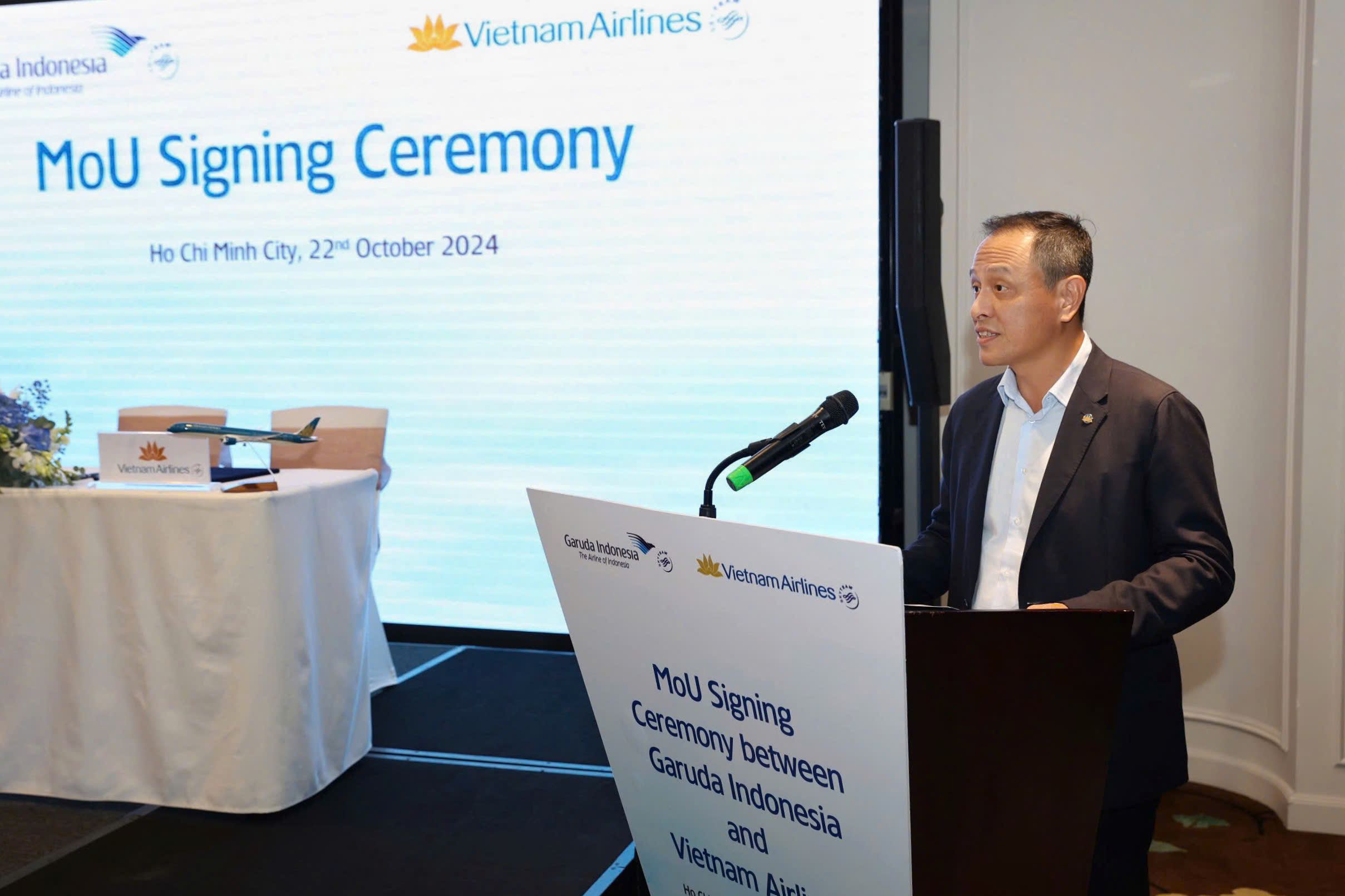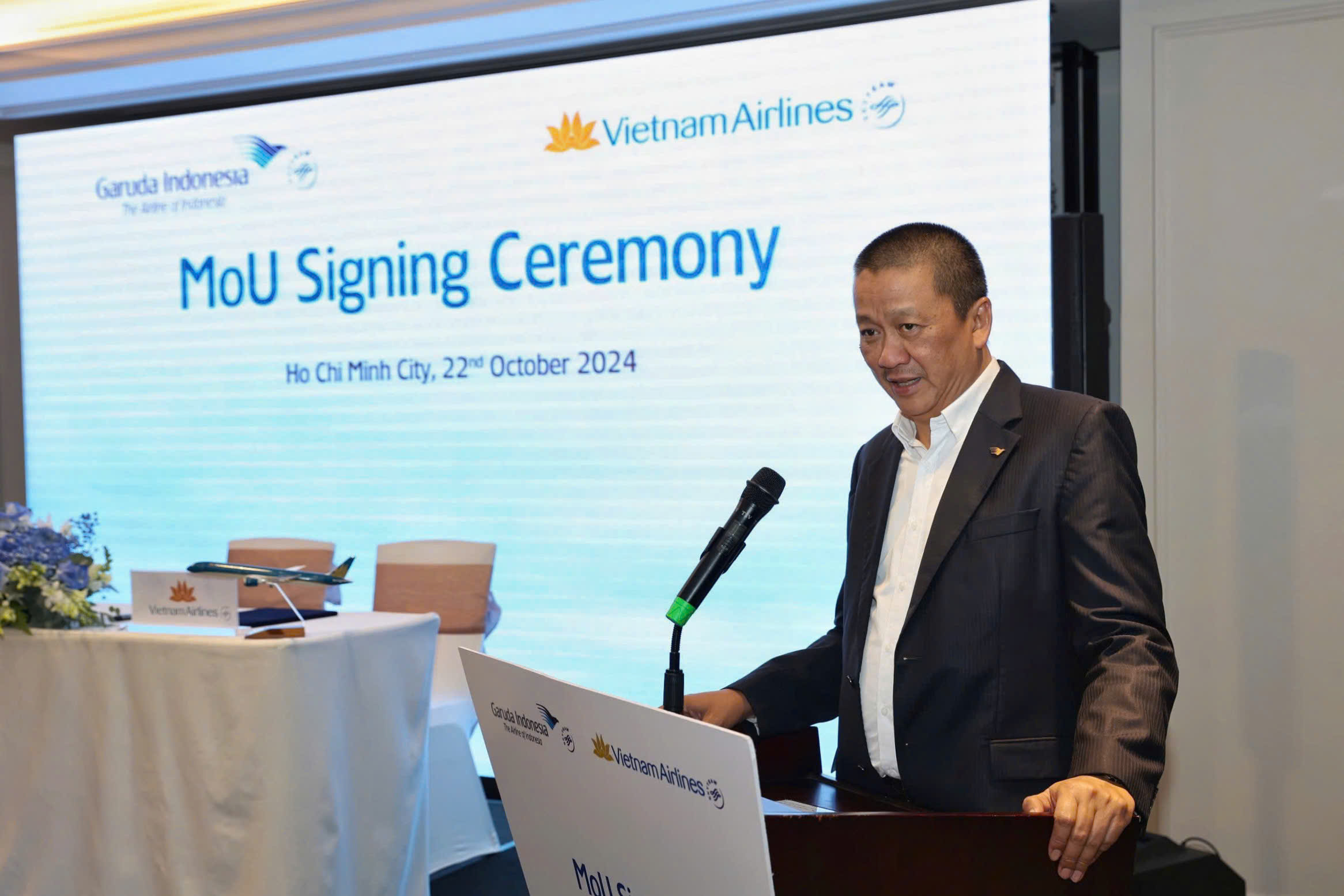 Ông Lê Hồng Hà – Tổng Giám đốc Vietnam Airlines chia sẻ: “Chúng tôi tin rằng, sự hợp tác này sẽ tạo ra cả lợi ích trước mắt và những giá trị lâu dài cho cả hai hãng hàng không. Vietnam Airlines mong muốn tiếp tục duy trì, phát triển hơn nữa các cơ hội hợp tác trên nhiều lĩnh vực khác như dịch vụ, bảo dưỡng kỹ thuật, vận chuyển hàng hóa… trên cơ sở đôi bên cùng có lợi. Sự song hành này ngoài mang lại lợi ích cho hai bên còn góp phần tăng cường hợp tác trong khuôn khổ Liên minh hàng không SkyTeam, tổ chức mà Vietnam Airlines và Garuda Indonesia đều là thành viên nòng cốt. Hợp tác này còn giúp thúc đẩy sự phát triển của ngành vận tải hàng không và hoạt động giao thương, kết nối giữa Việt Nam và Indonesia.”
